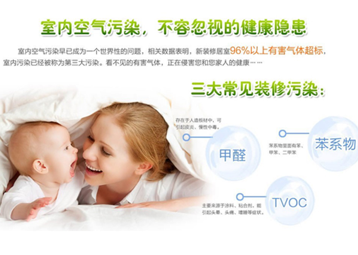 近年来国内外对室内环境污染进行了大量研究,已检测到的有毒有害物质达数百种,物理类的有:电磁波、噪声、射线等;生物类的有:病毒、细菌、真菌、寄生虫、花粉等;化学类的有:二氧化硫、甲醛、笨系物、TVOC等。这些有害物质都可程度不同地危害人体健康。